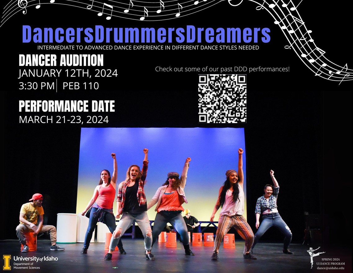 Source : marketplace.uidaho.eduDancersDrummersDreamers Dance Audition, Friday, January 12, 2024